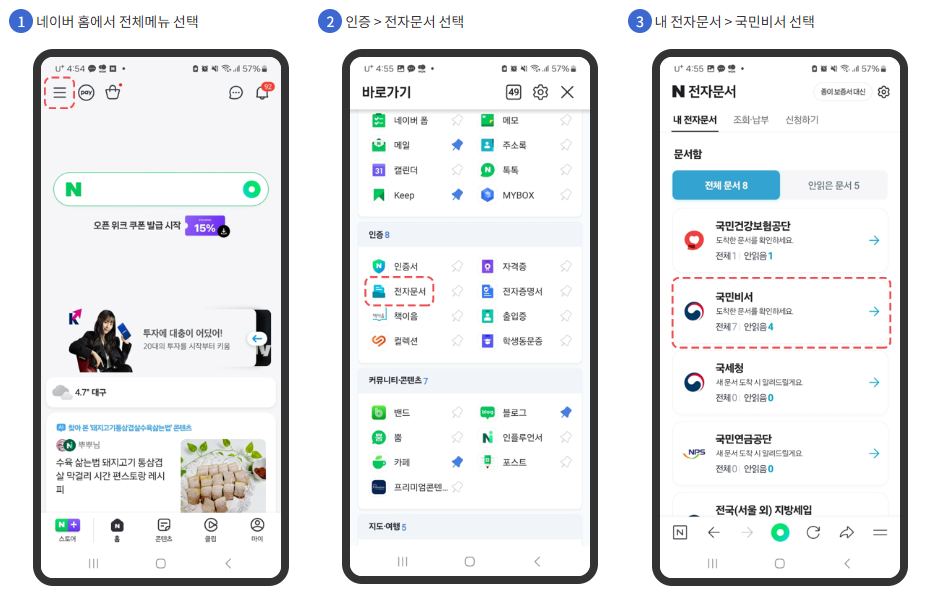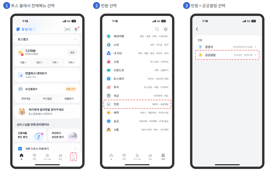 - 메뉴 → ‘국민비서’ 또는 ‘내 알림’ 탭 클릭